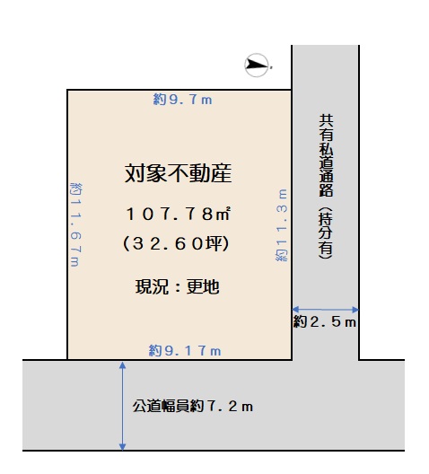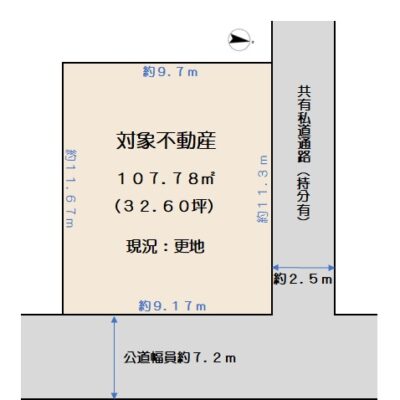 土地面積 107.78㎡(32.60坪)私道負担なし